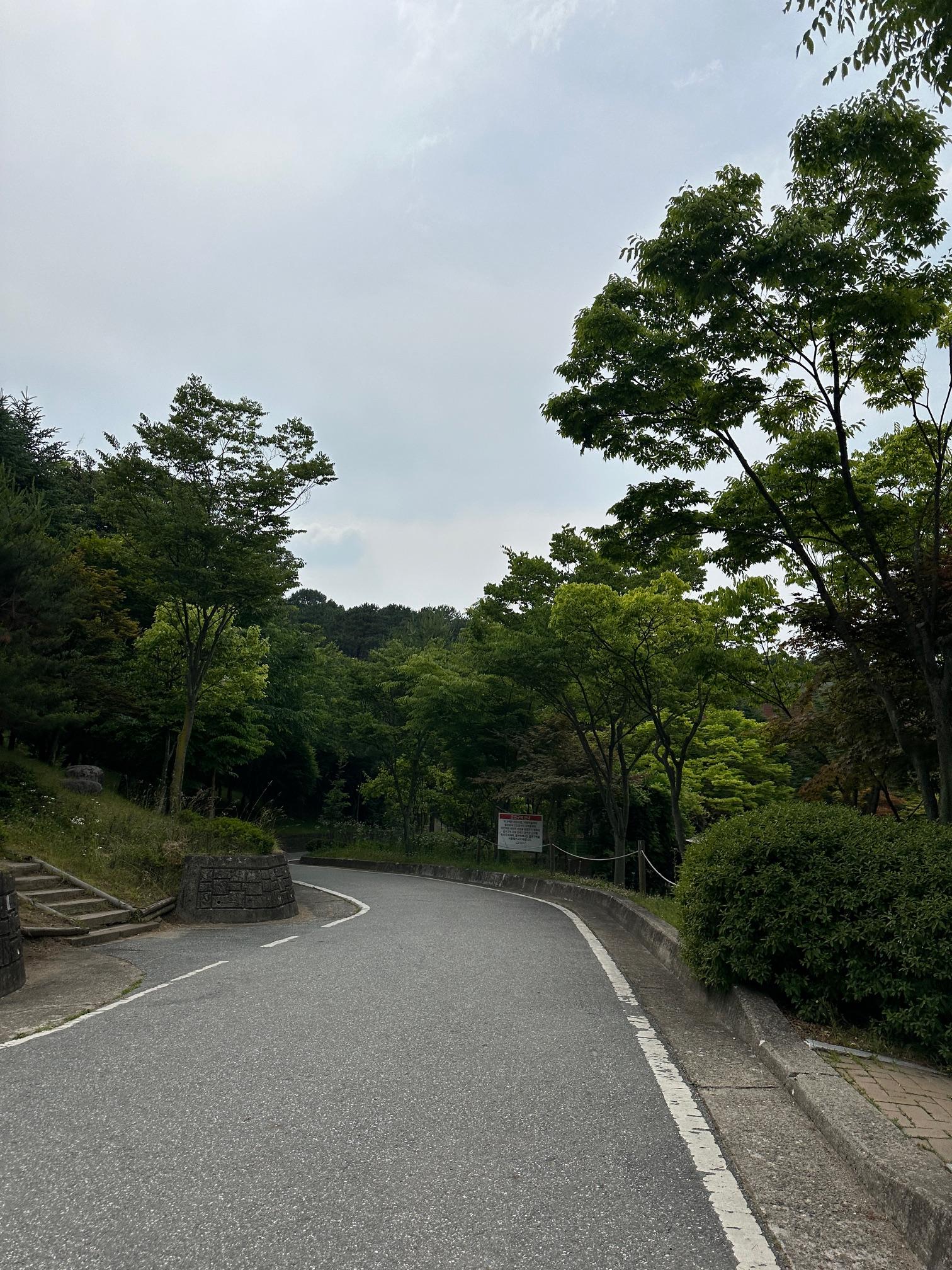 바깥으로 나오면 주변이 산책하기 참 좋게 되어있었습니다. 나무도 많고 벤치도 곳곳에 보였고요. 계절이 이래서 나무들이 푸릇푸릇 아주 청량하게 보였어요. 하늘까지도요.