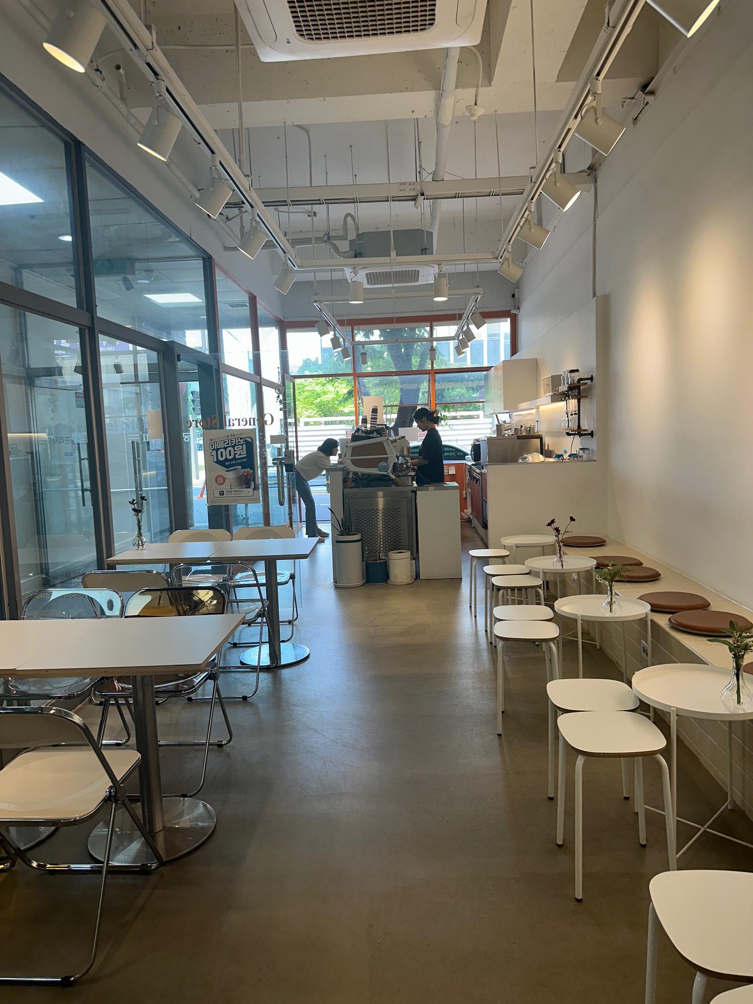 기다리는 동안 카페 안을 보았는데요. 크지는 않지만 깨끗하고 밝은 실내에다 사장님께서 정성스레 올려놓은 화병에 꽂힌 생화를 보니 얼마나 신경 써서 운영하고 계시는지 알 수 있었어요.